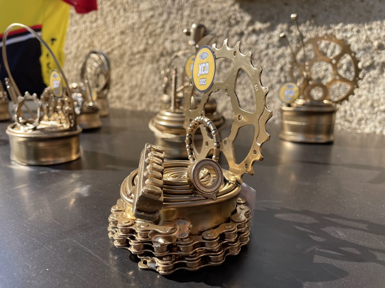 Enfin les fameux trophées fabriqués main par Édith PIAZZA à partir des déchets vélo de l’atelier recyclerie du club.