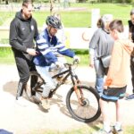 À 11h, les compétiteurs sont arrivés et sont venus rencontrer l’équipe des jeunes organisateurs. Un tour de repérage du circuit a alors été fait tous ensemble pour analyser et décomposer tous les aspects technique et physique du circuit et s’essayer à passer certaines sections (passage de passerelles, montée et descentes, escaliers, virage en devers, …). Les jeunes habitués du terrain et de la discipline était donc de précieux conseil pour guider les sportifs. Cela a permis aussi d’ajuster le circuit en direct avec eux pour maximiser leur plaisir comme prévu par les jeunes.