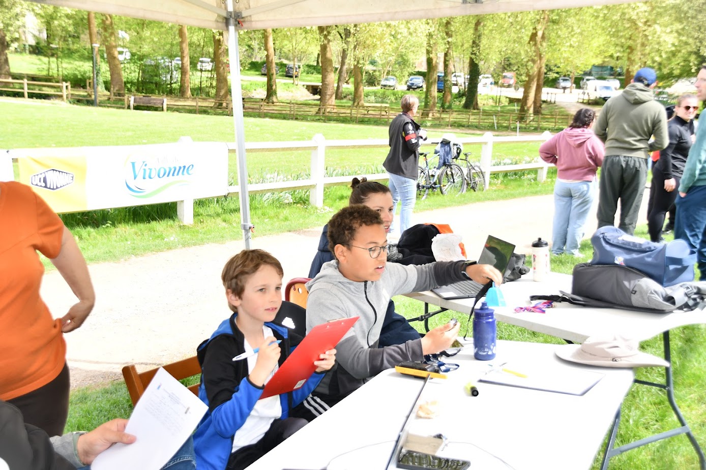 Nohan T. (10 ans), Louam B. (10 ans) et Andréa P. (8 ans) ont préparé des trophées à partir de pièces vélos recyclées avec Edith P. et Léo M. (11 ans), Imanol N. (11 ans), Eden G. (9 ans), Soan M.(11 ans), Timothé P. (12 ans) on fait le tour du bourg de Vivonne avec Esteban D. et Emilien G. pour négocier des lots pour la tombola. Clémence D. (14 ans) a offert une de ses coupes gagnée pendant la préparation.