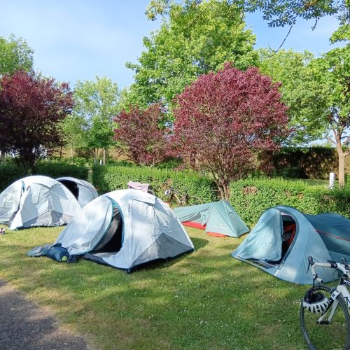 À peine levés et tentes pliées, les campeurs se sont rendus au point de ralliement des activités matinales : le domaine viticole La Chevallerie de Jean-Charles Bruneau. Là, ils ont rejoint les autres participants venus profiter des paysages et du terroir local pour la journée.