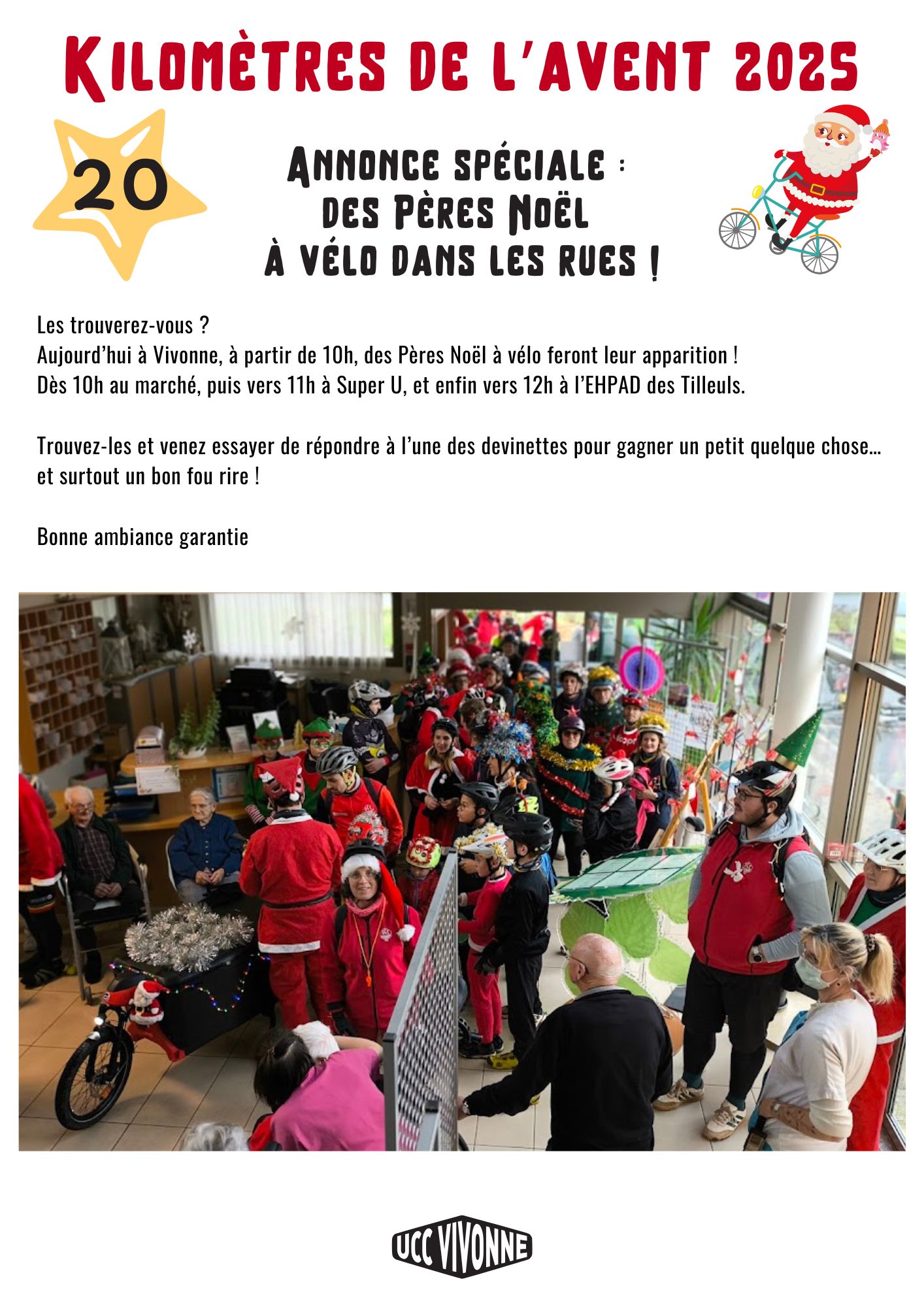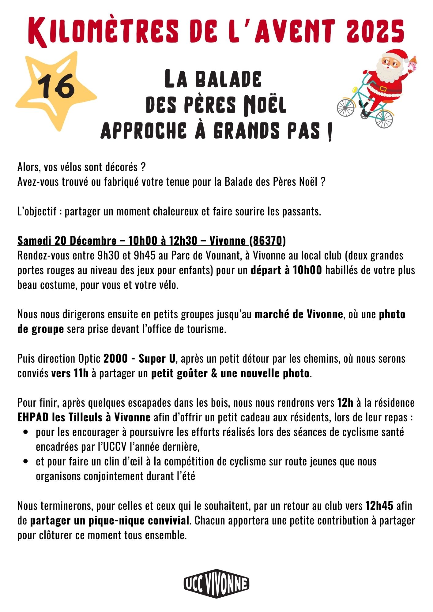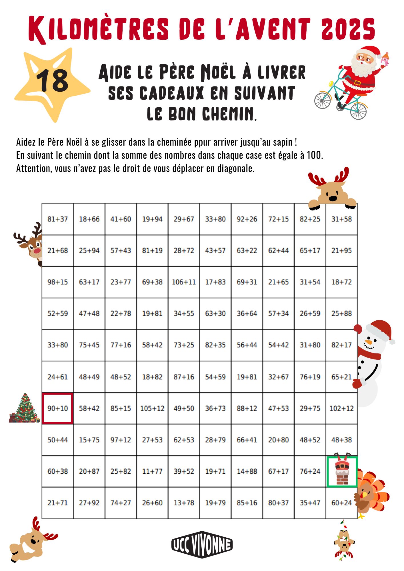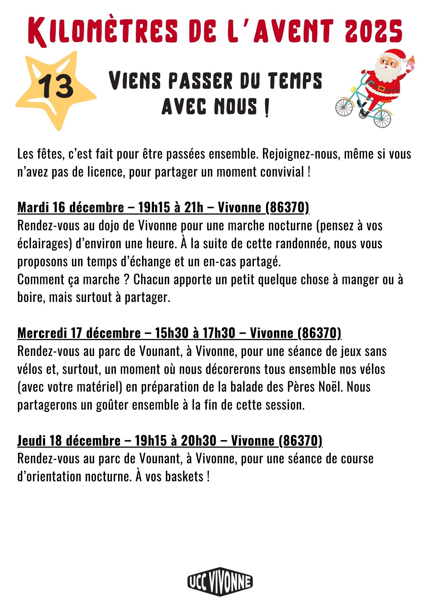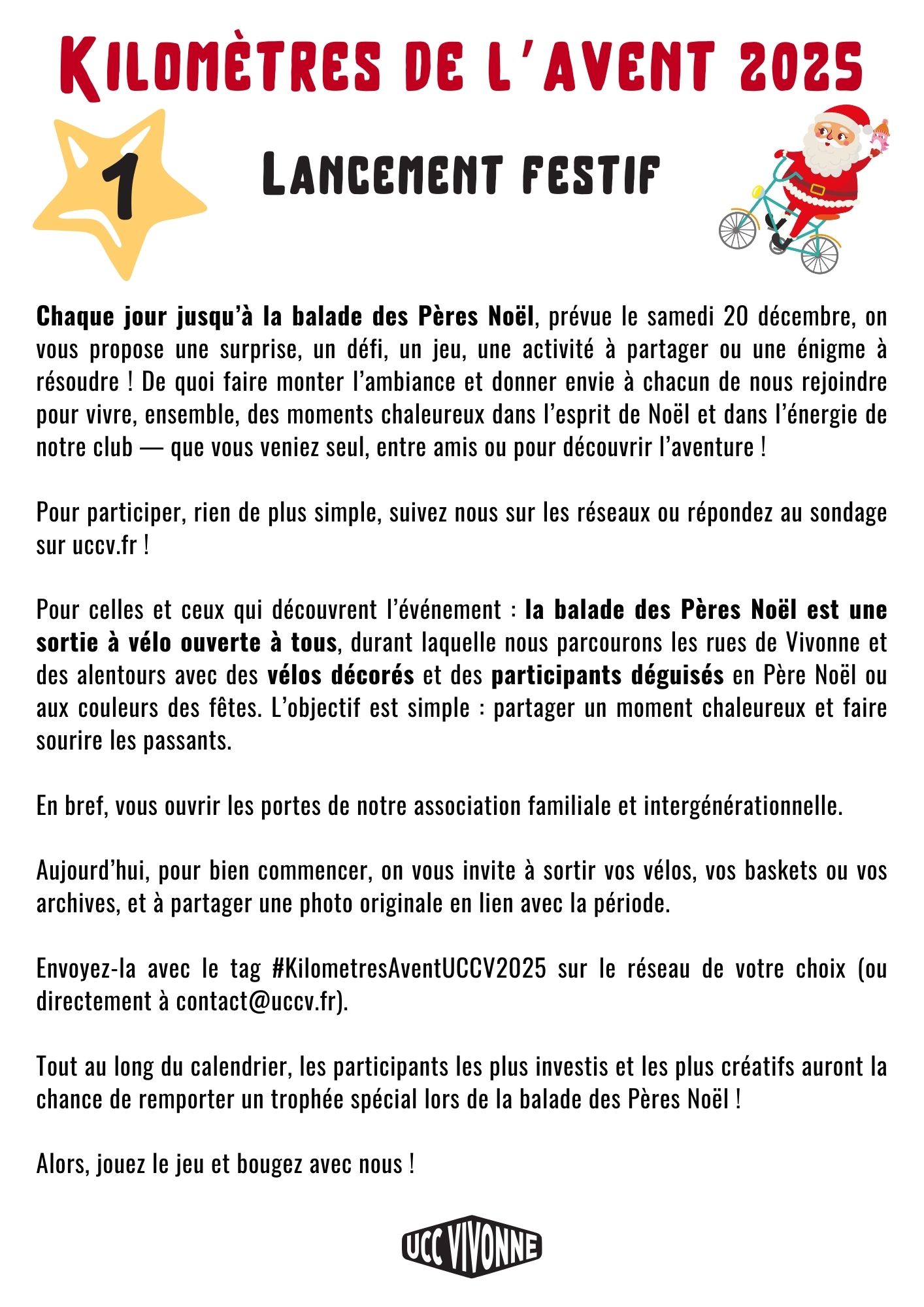 Suivez jours après jours, jusqu’à la balade des Pères Noël, les surprises, défis, jeux, activités à partager ou énigmes à résoudre proposées pour les kilomètres de l’avent – édition 2025 !