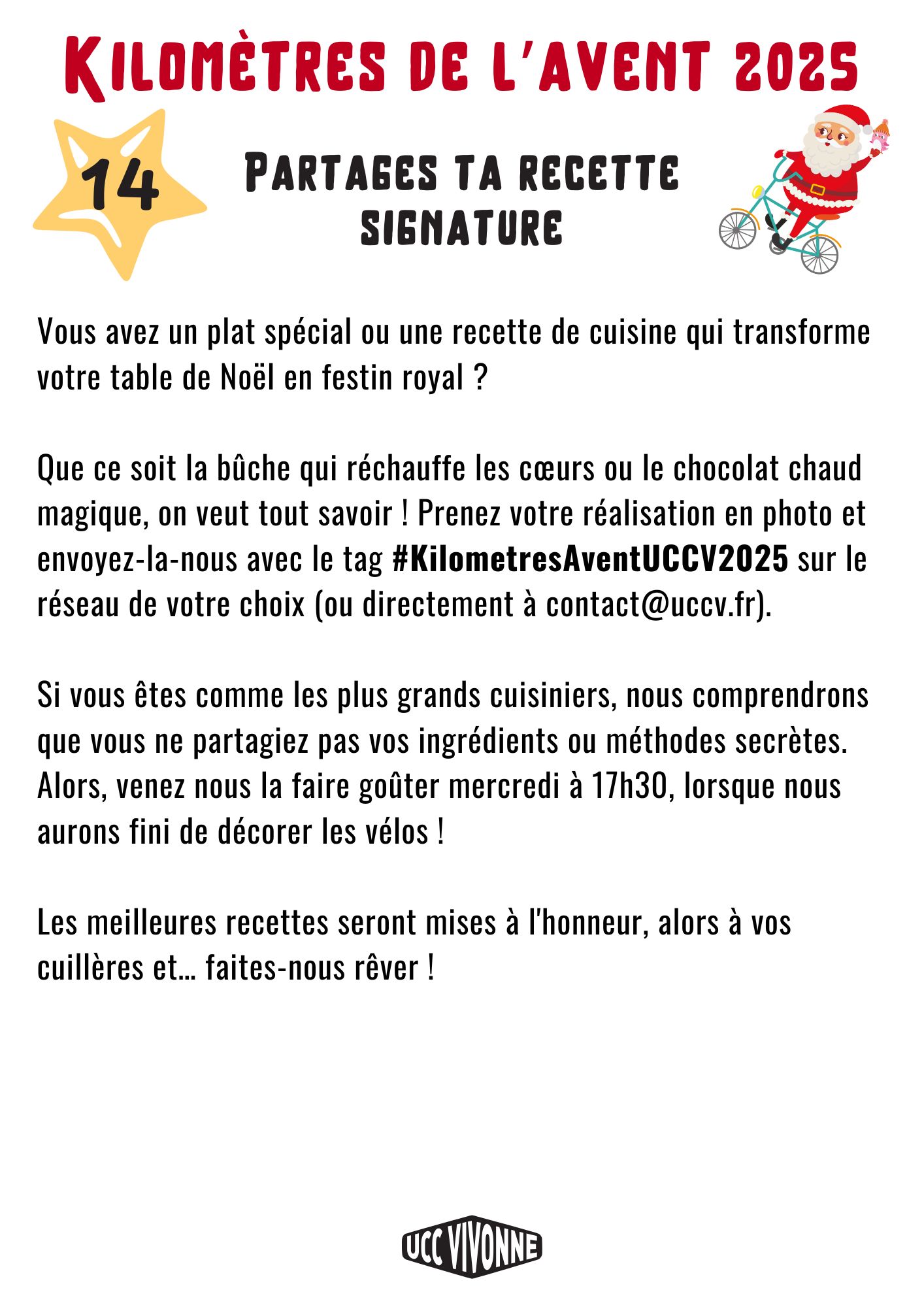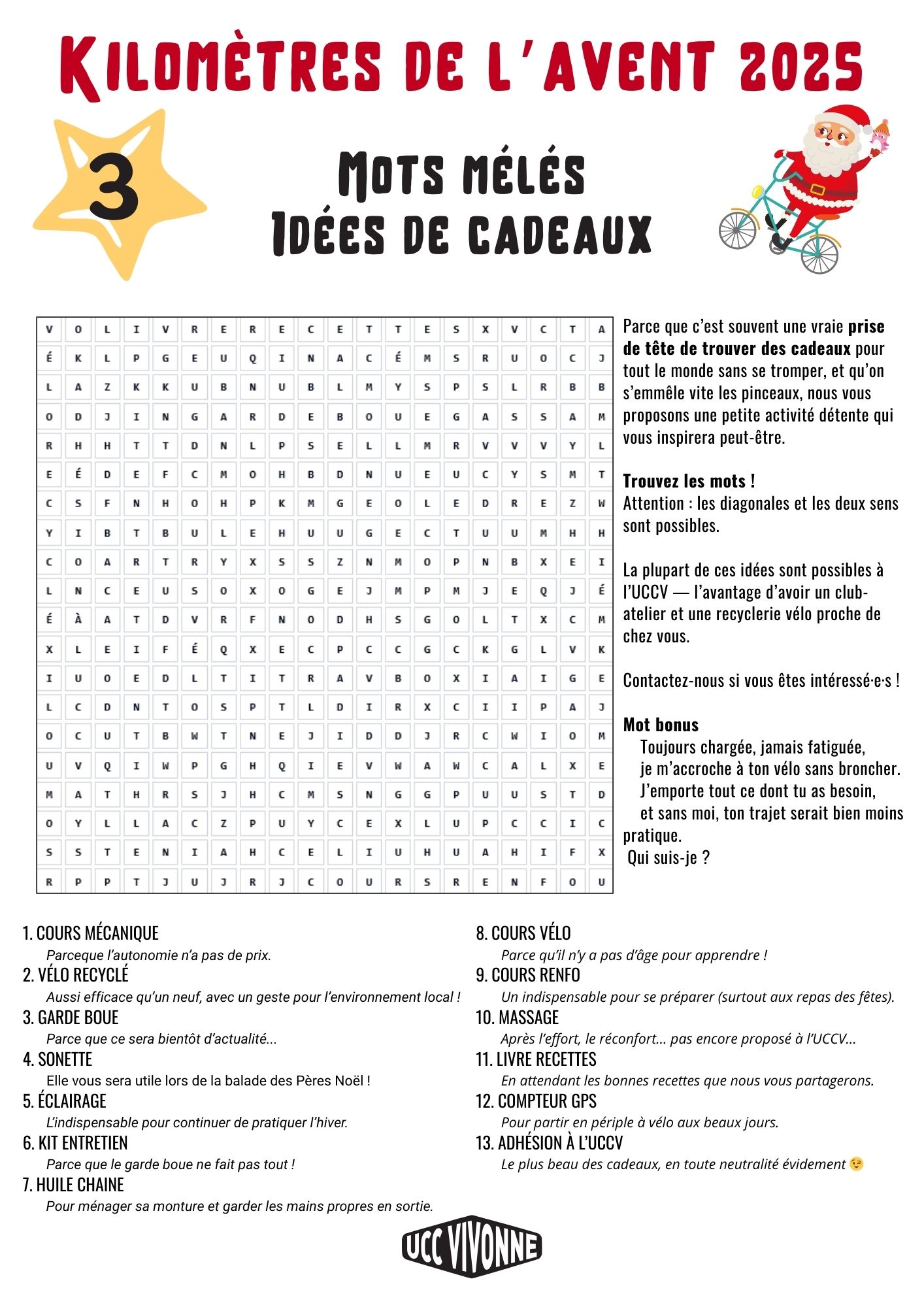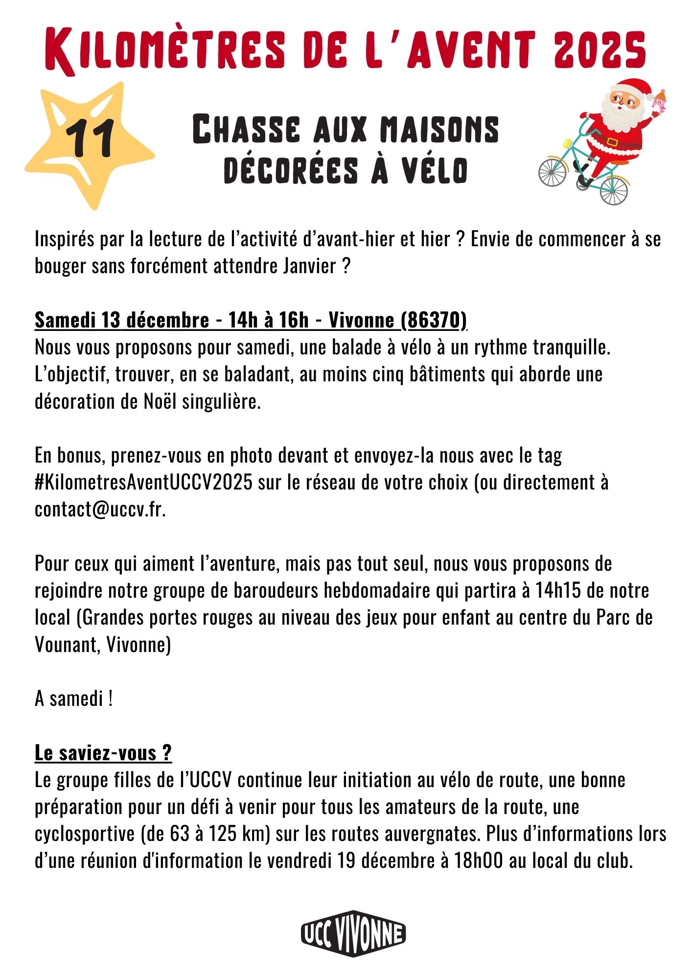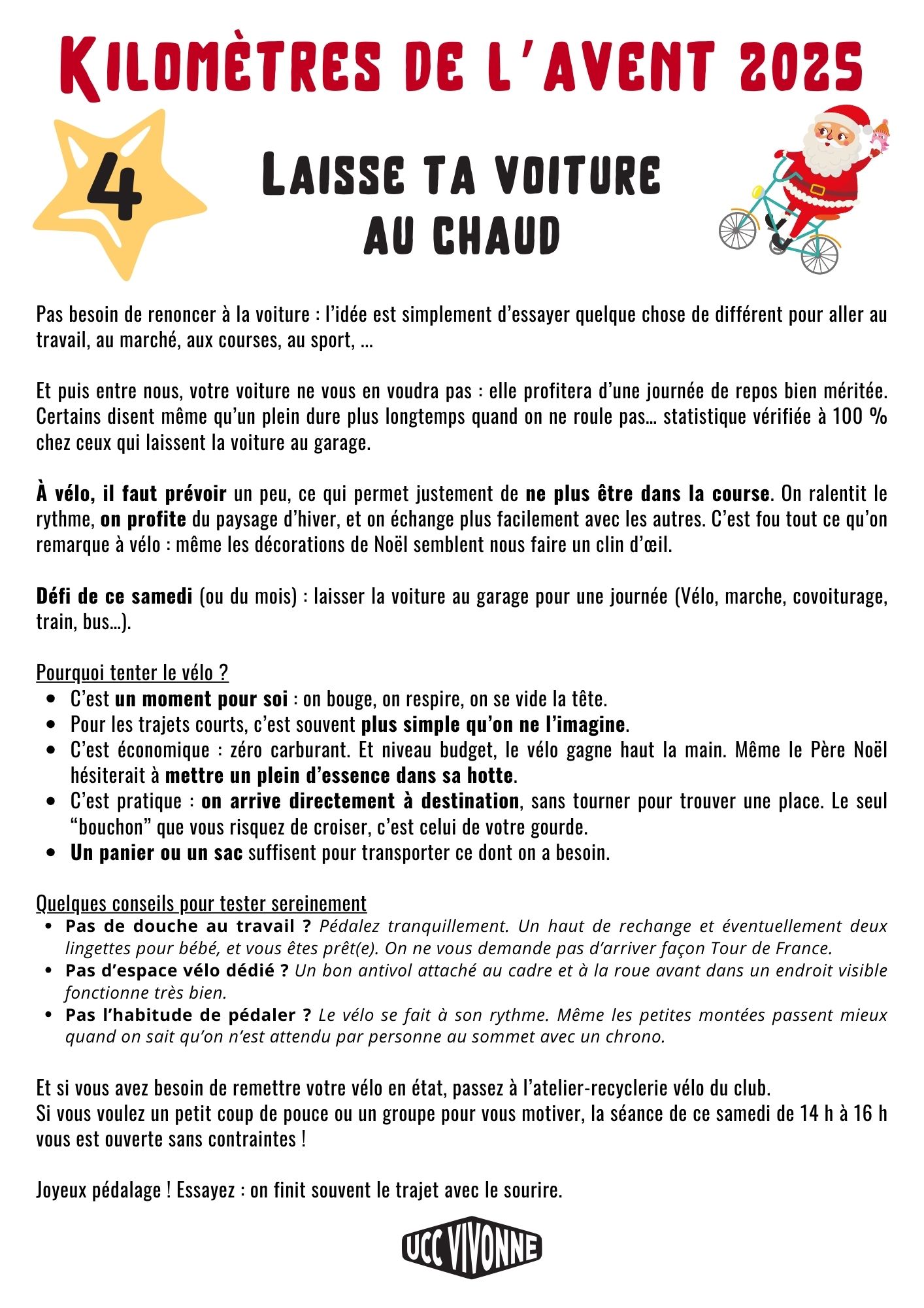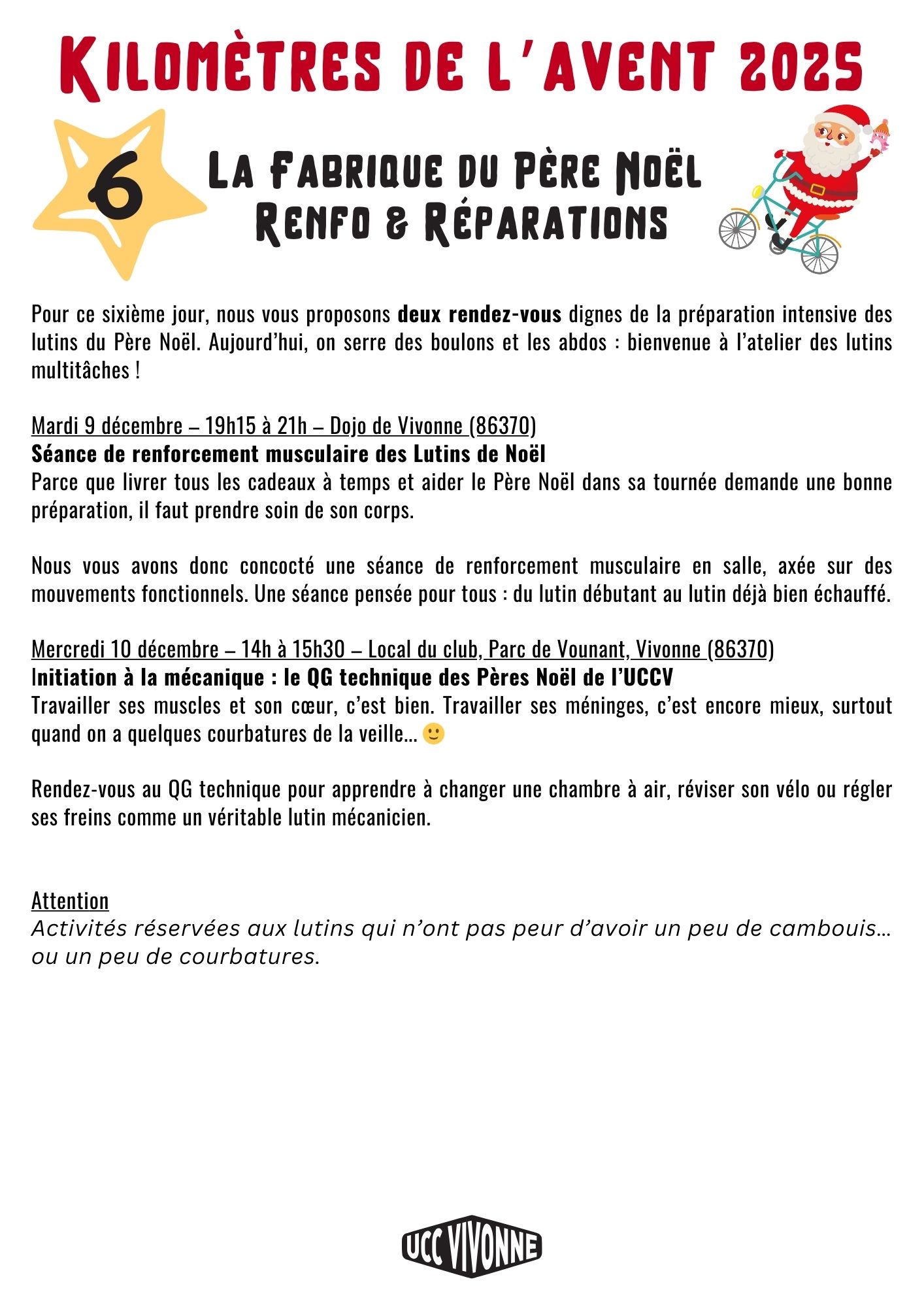 Suivez jours après jours, jusqu’à la balade des Pères Noël, les surprises, défis, jeux, activités à partager ou énigmes à résoudre proposées pour les kilomètres de l’avent – édition 2025 !