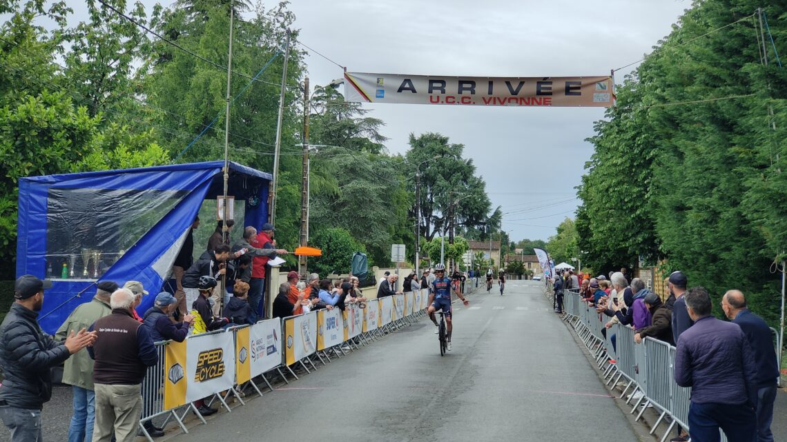 Le peloton est toujours resté relativement proche de l’échappée sans réussir à la rattraper. De beaux efforts notamment menés par Jean-Baptise NIVELLE (UCC VIVONNE). Ces efforts permettent de souligner également la persévérance des coureurs du club : Evan BERGEON (abandon crevaison), Cécile SCOTTO (seule féminine) et Rayan BONNEAU COTTENEC.