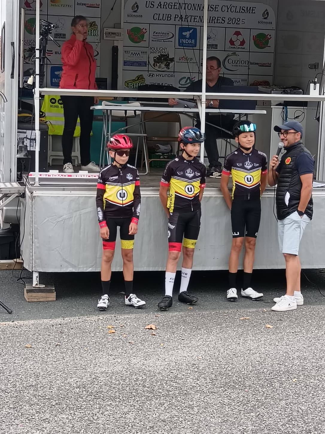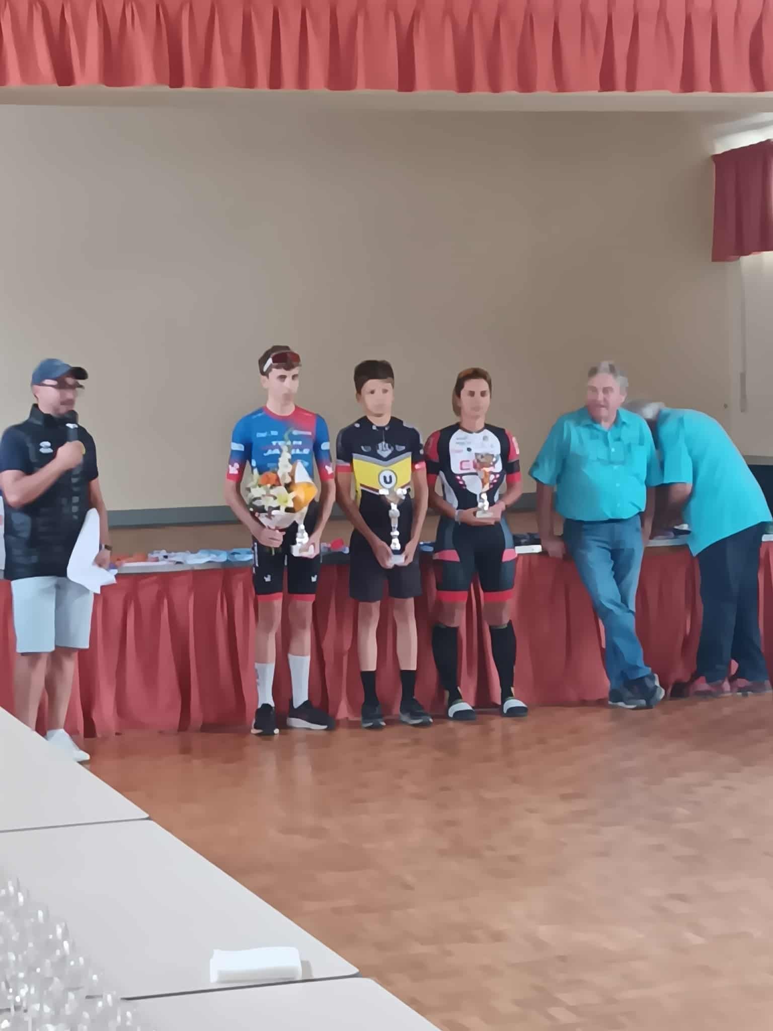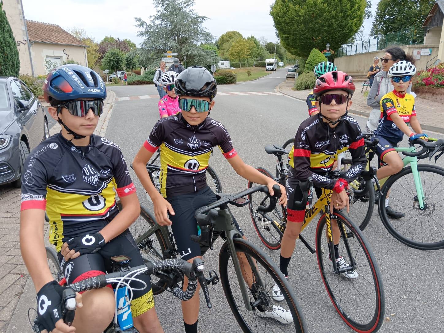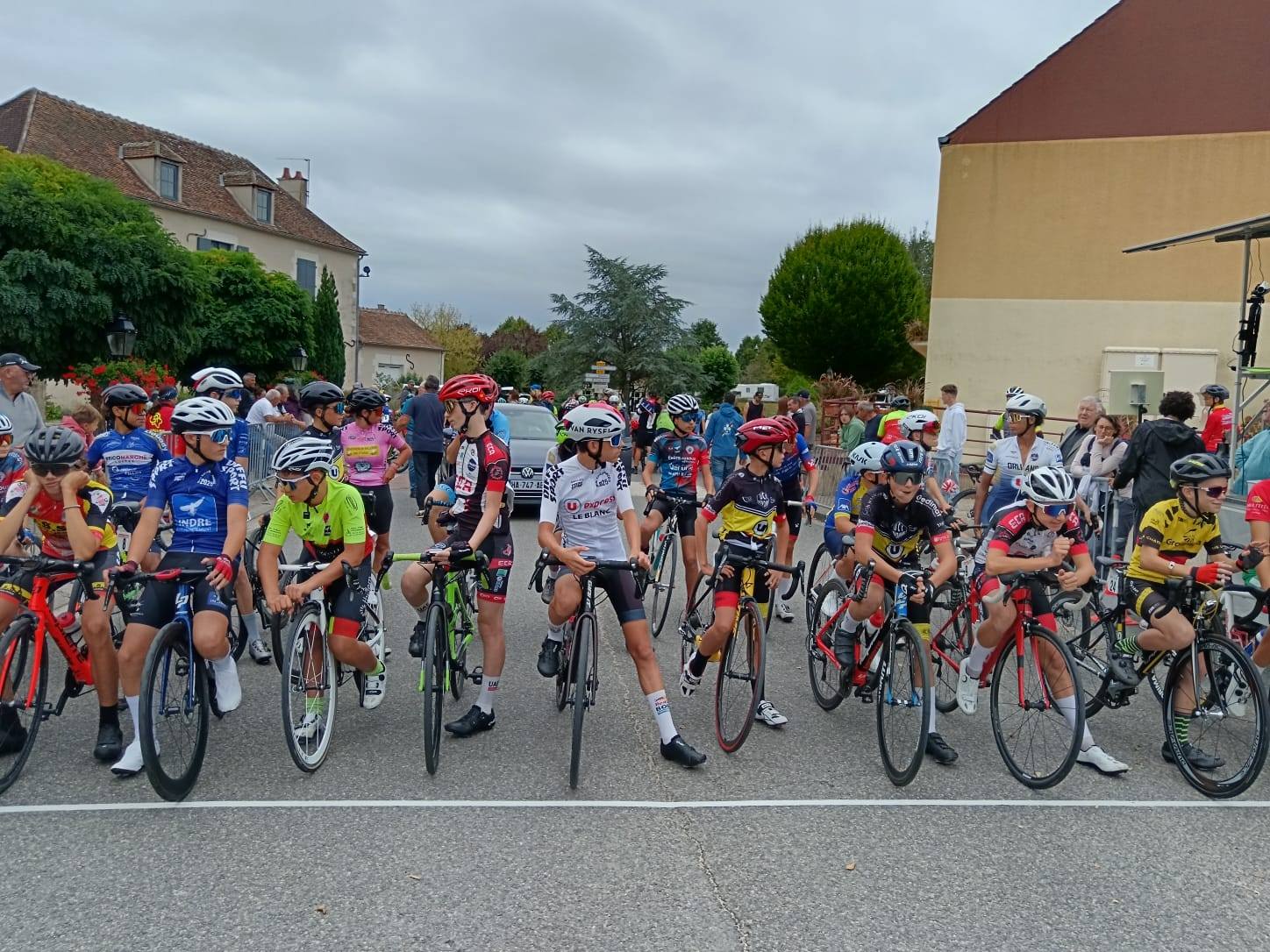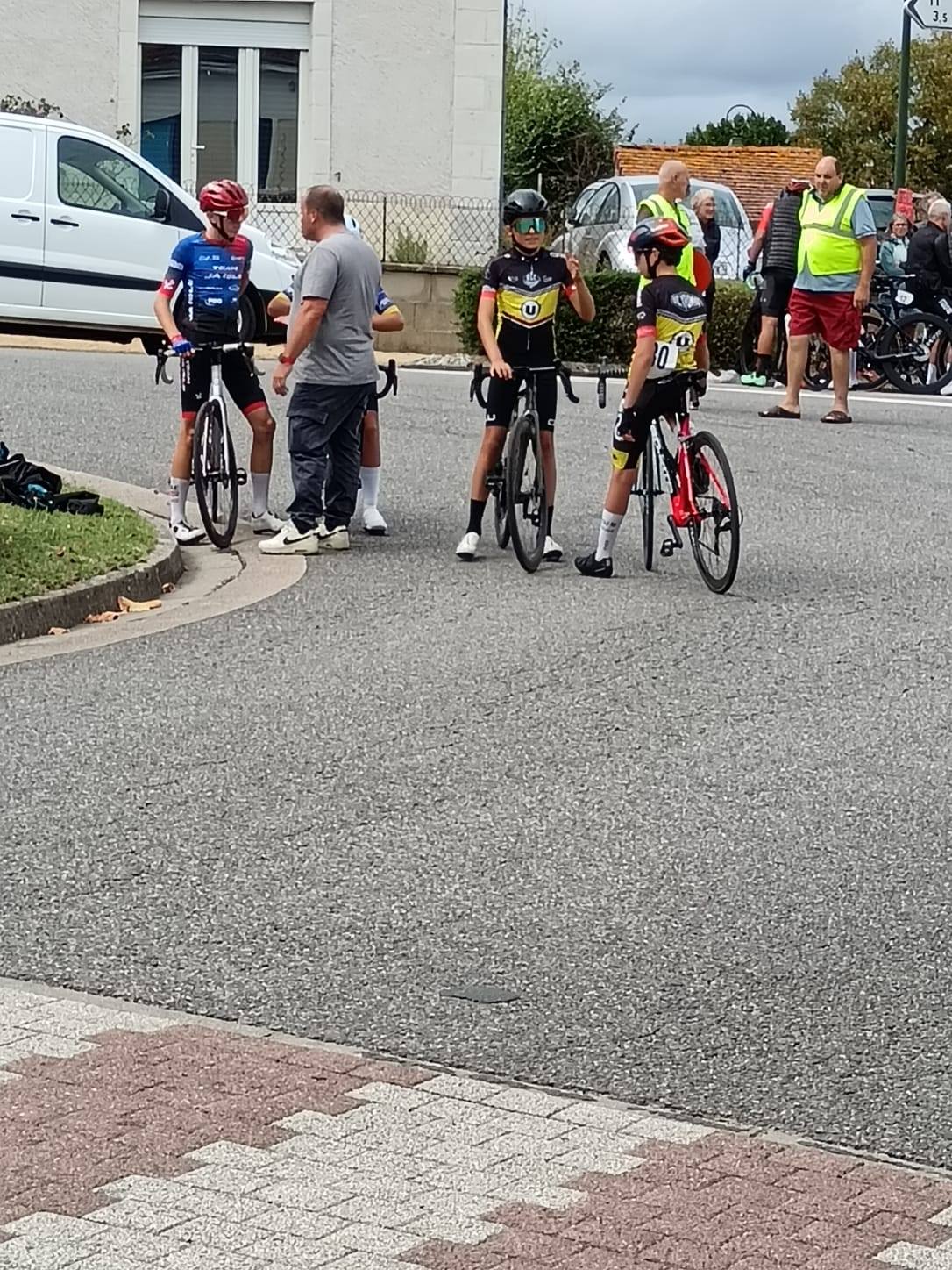 Le top départ à été donné sous un beau soleil et un vent prononcé sur la partie finale du circuit. Tom et Enzo ont tenu le peloton durant le premier tour, Yanis a roulé en duo avec une cycliste d’un autre club.