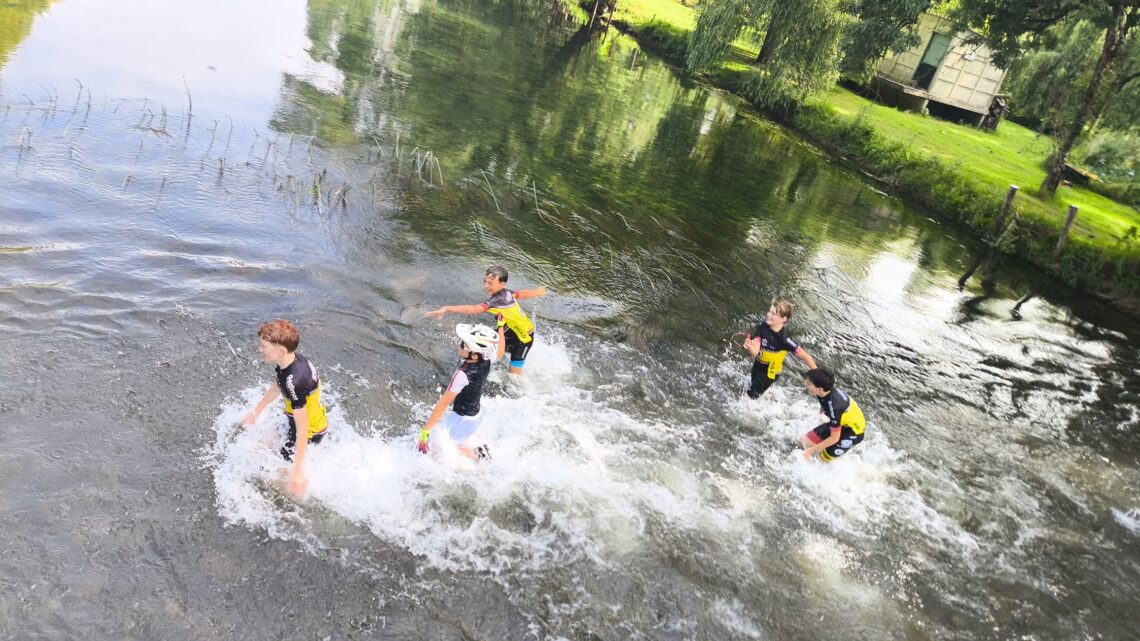 L’après-midi, de 15h30 à 17h30, place à la séance route pour les 7-14 ans. Une quinzaine de jeunes ont travaillé les trajectoires, les relais et le travail d’équipe sur la route de Voulon, dans le but de lancer un sprint ou une attaque. Bien sûr, avec la chaleur et les efforts fournis, la séance s’est terminée à la rivière… par une course à pied dans l’eau !