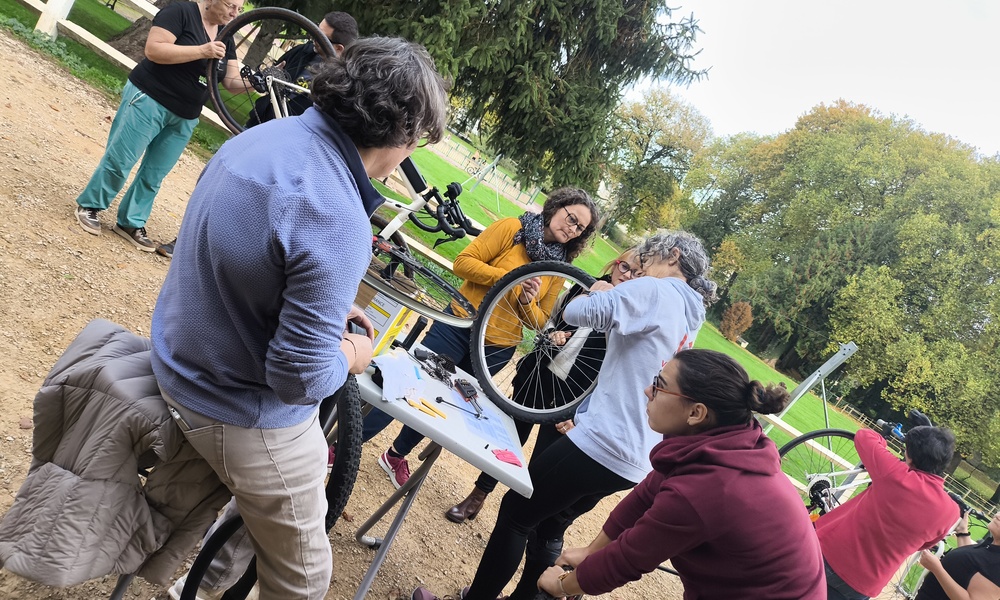 En parallèle, à côté du local, des filles et des jeunes adhérents expérimentés se sont attelés à une vingtaine de vélos fraîchement récupérés dans les différentes déchetteries de la Communauté de Communes des Vallées du Clain avec laquelle nous travaillons. Leur mission : trier les vélos réparables et démonter ceux qui ne le sont pas pour récupérer des pièces pouvant servir à restaurer d’autres vélos, tandis que les composants irréparables étaient envoyés vers un circuit de recyclage approprié, en partenariat avec Ecologic.